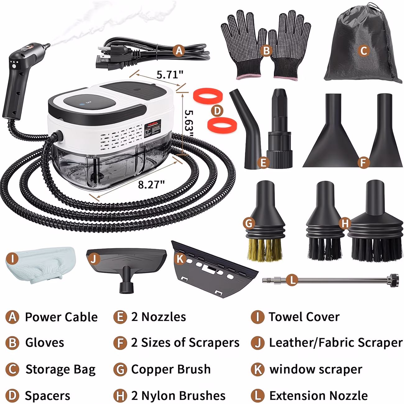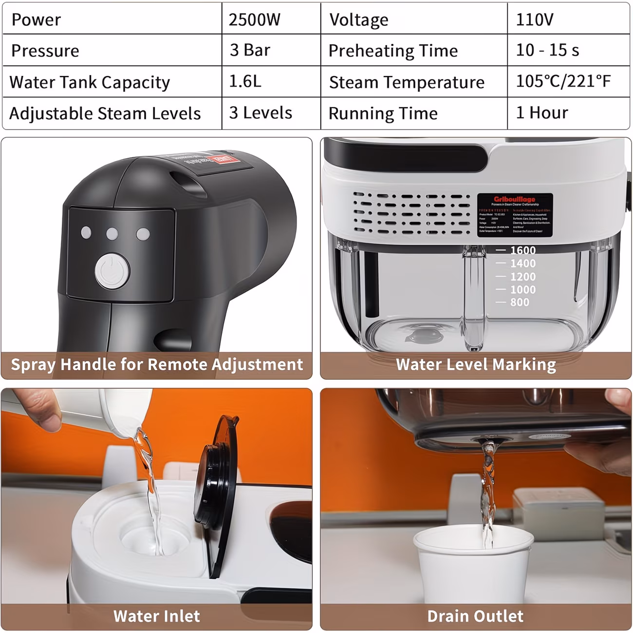 High-Pressure Handheld Steam Cleaner – 2500W – 1.6L Tank (Red)
