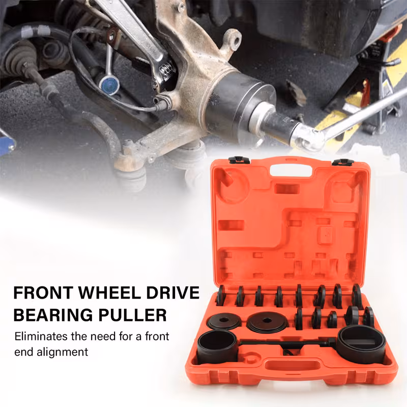 Tool set can be used for removal of wheel bearings on front wheel drive vehicles